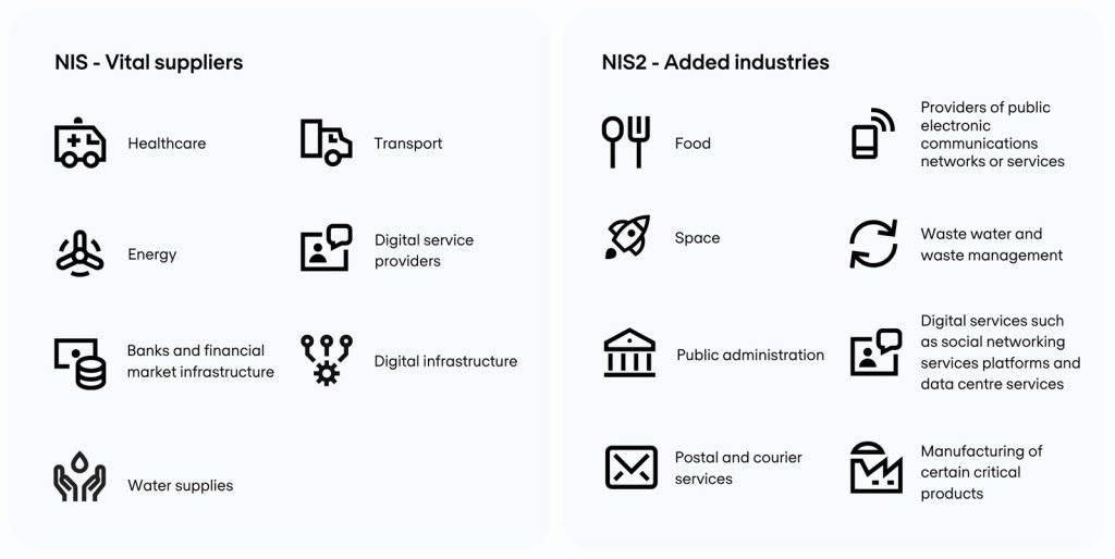 Met de goedkeuring van de NIS2-richtlijn door het Europees Parlement in 2022, worden de cybersecurity-eisen verhoogd en worden meer organisaties aangemerkt als Essentiële Aanbieders (EA’s) en Belangrijke Aanbieders (BA’s). De vernieuwde richtlijn heeft betrekking op de volgende sectoren:
