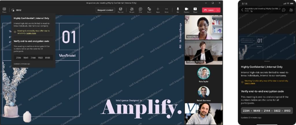 Microsoft Teams Premium biedt de mogelijkheid om watermerken toe te voegen aan vergaderingen. Watermerken helpen bij het beschermen van de privacy van deelnemers door hun namen of andere persoonlijke informatie te verbergen. Deze functie is handig voor bedrijven en organisaties die gevoelige informatie bespreken tijdens Teams-vergaderingen. Je kunt ook opnamebeperkingen instellen en end-to-end encryptie (E2EE) gebruiken voor extra bescherming tijdens gevoelige vergaderingen.