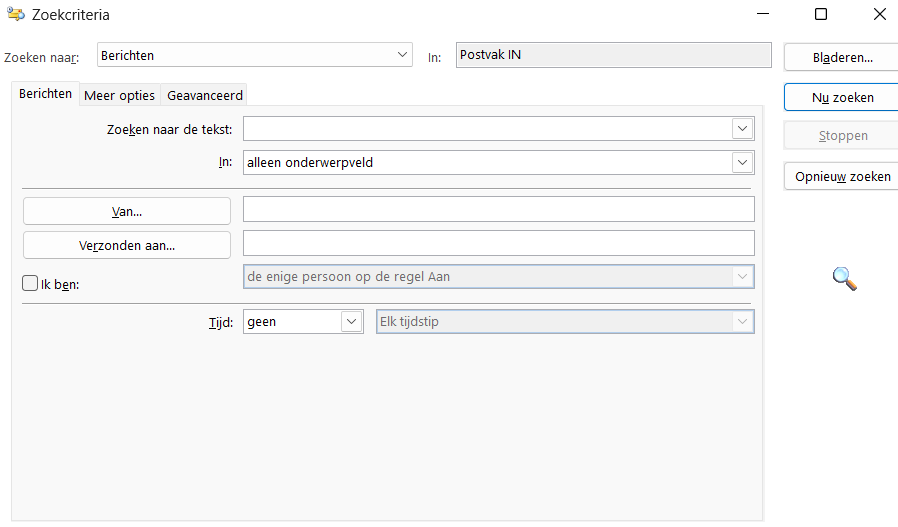Naast deze basiszoekoperatoren heeft Outlook ook nog andere geavanceerde zoekopties. Hieronder staan een paar voorbeelden: