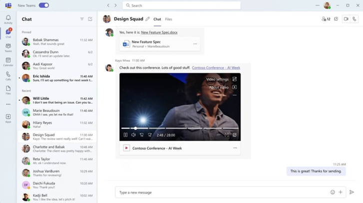Deel en bekijk video’s rechtstreeks in de chat dankzij de inline videovoorbeeldfunctie. Zo hoef je niet uit de chat te gaan om de video te bekijken en kun je direct daaronder reageren.